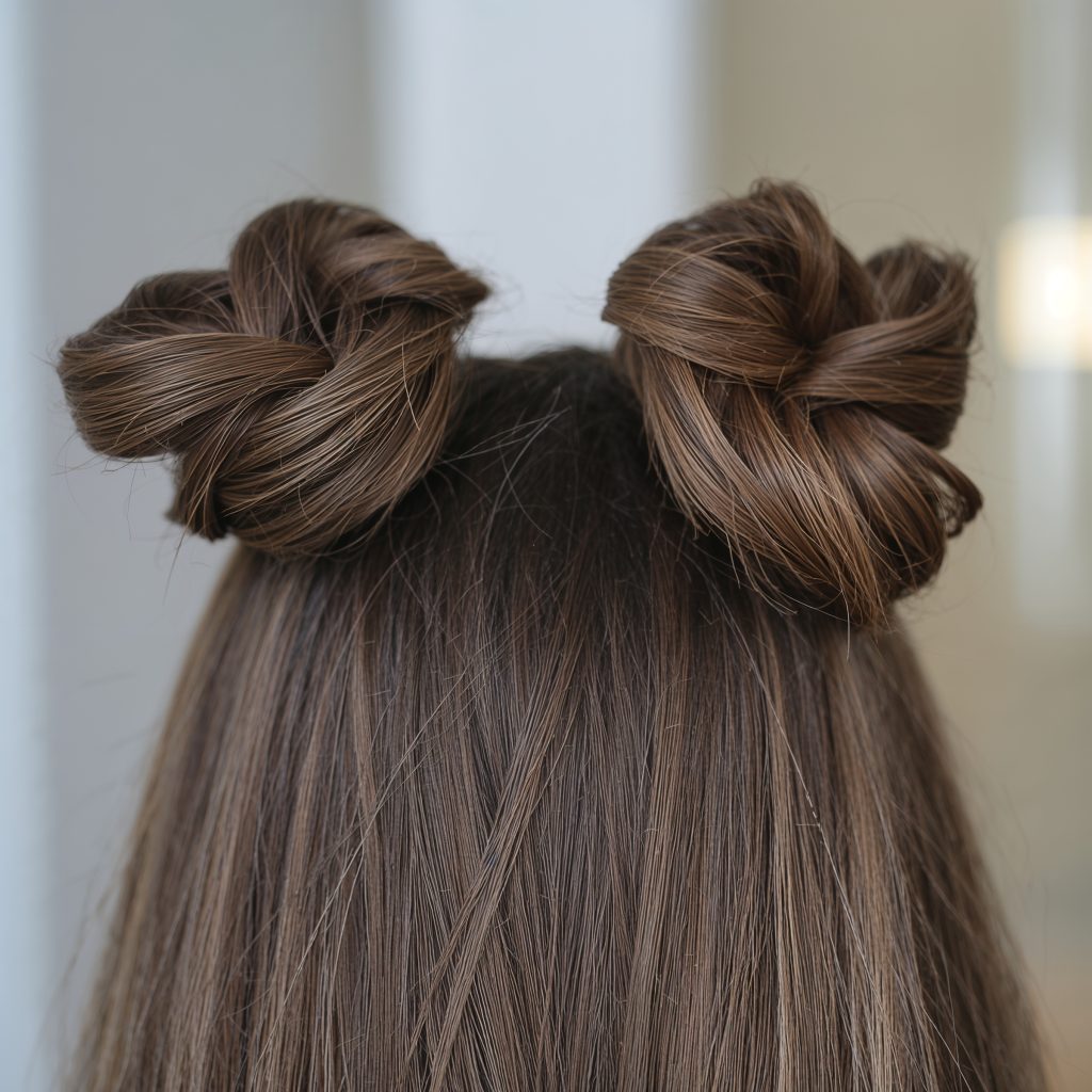 • Half-up bun (mini bun)